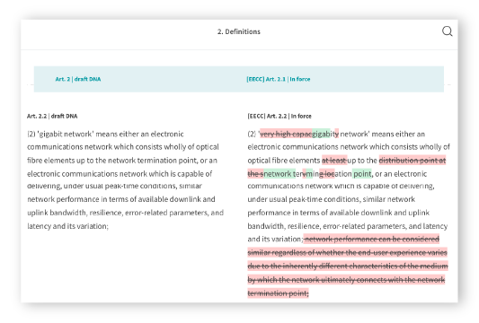It includes the ability to make easy comparisons of the proposed text with the European Electronic Communications Code (EECC) that is currently in force.