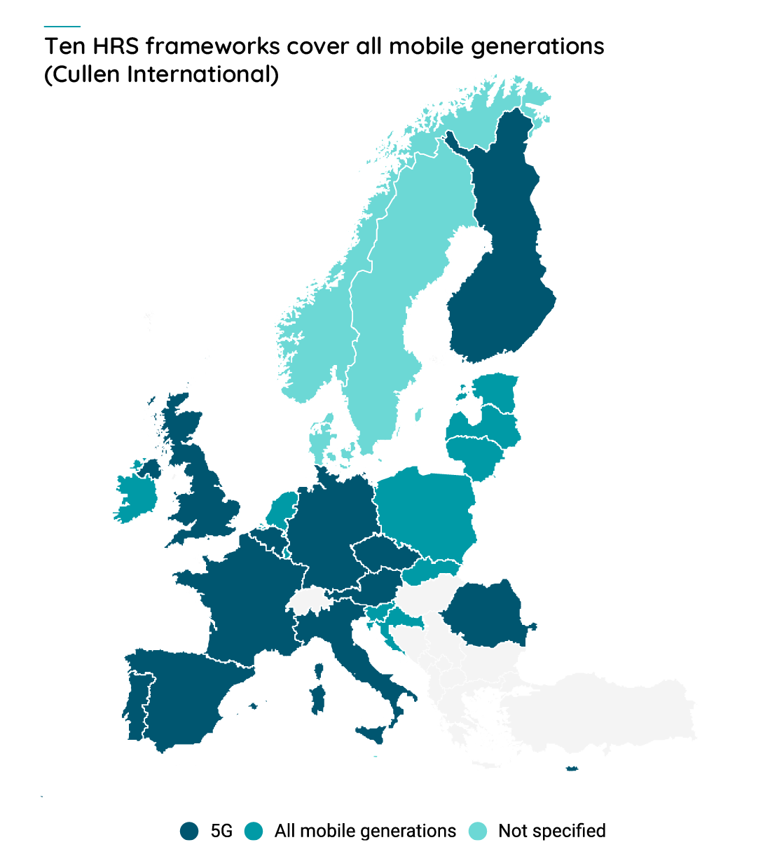 The vast majority of European countries have proposed or adopted a framework for potentially restricting HRS. However, Cullen International has only identified ten countries (nine of which in the EU) that are, in practice, restricting the use of equipment from certain vendors, namely Huawei and ZTE.